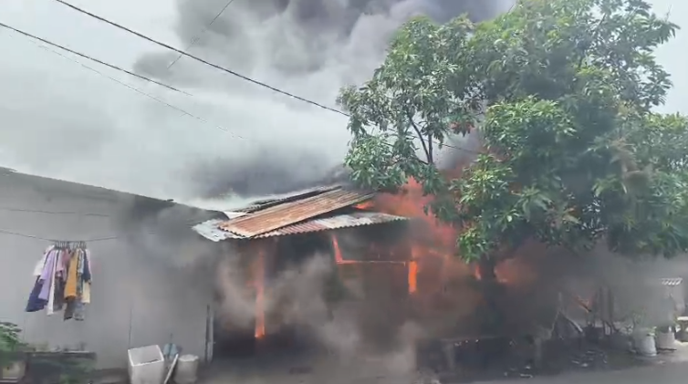 Kepulan asap hitam terlihat membumbung tinggi, sementara kios-kios yang sebagian besar berbahan kayu dengan cepat dilalap si jago merah.