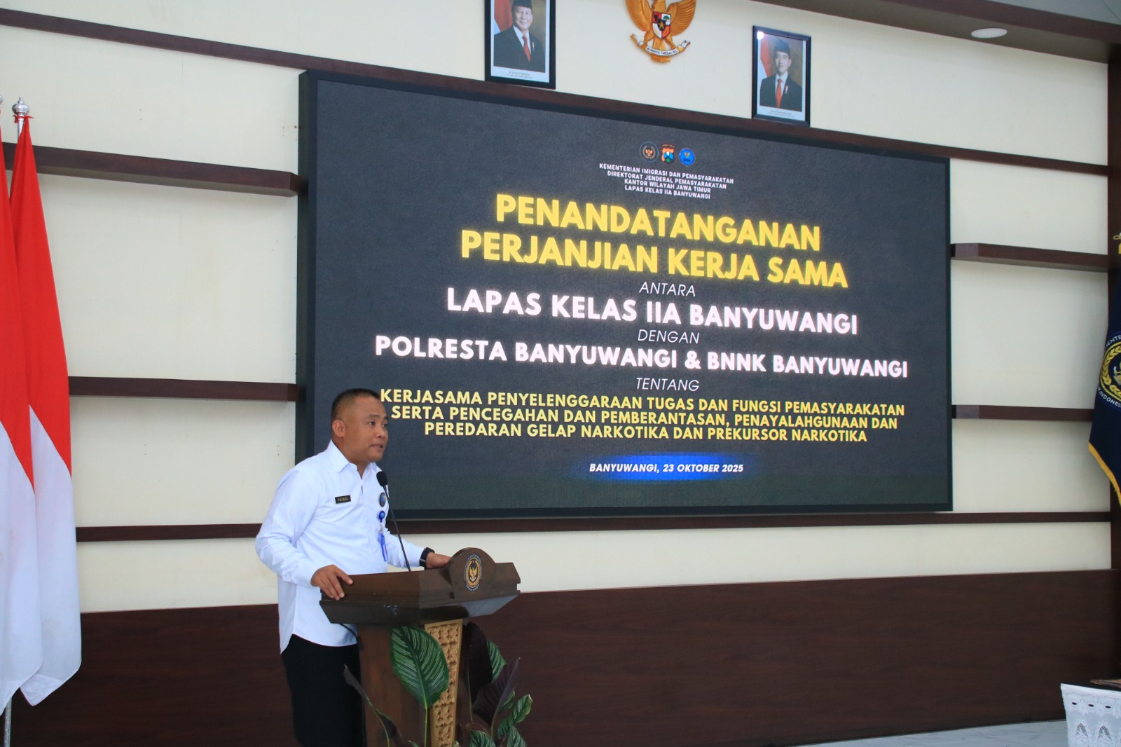BANYUWANGIHITS.ID – Lembaga Pemasyarakatan (Lapas) Kelas IIA Banyuwangi terus menunjukkan komitmennya dalam memberantas peredaran gelap narkoba di dalam lingkungan lapas. Komitmen tersebut ditegaskan melalui penandatanganan kerja sama dengan Kepolisian Resor Kota (Polresta) Banyuwangi dan Badan Narkotika Nasional Kabupaten (BNNK) Banyuwangi, Kamis (23/10/25).