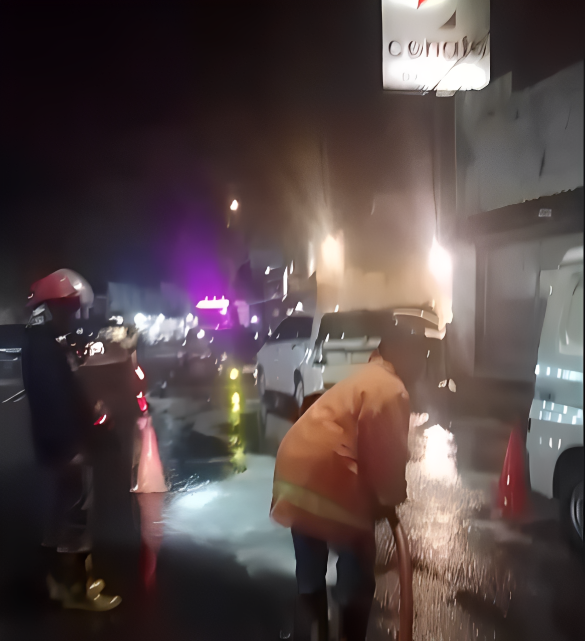BANYUWANGIHITS.ID – Petugas Dinas Pemadam Kebakaran dan Penyelamatan (Damkarmat) Kabupaten Banyuwangi bergerak cepat menangani insiden tumpahan solar yang terjadi di wilayah Kecamatan Genteng, Minggu (19/10/25) malam. Kejadian tersebut berlangsung tepat di depan Conato Genteng, Kelurahan Genteng Wetan.