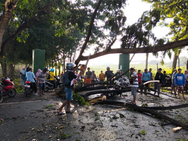 Dua Pengendara Yang Hendak Bekerja di Pabrik Seafood Tertimpa Pohon Tumbang di Wongsorejo.