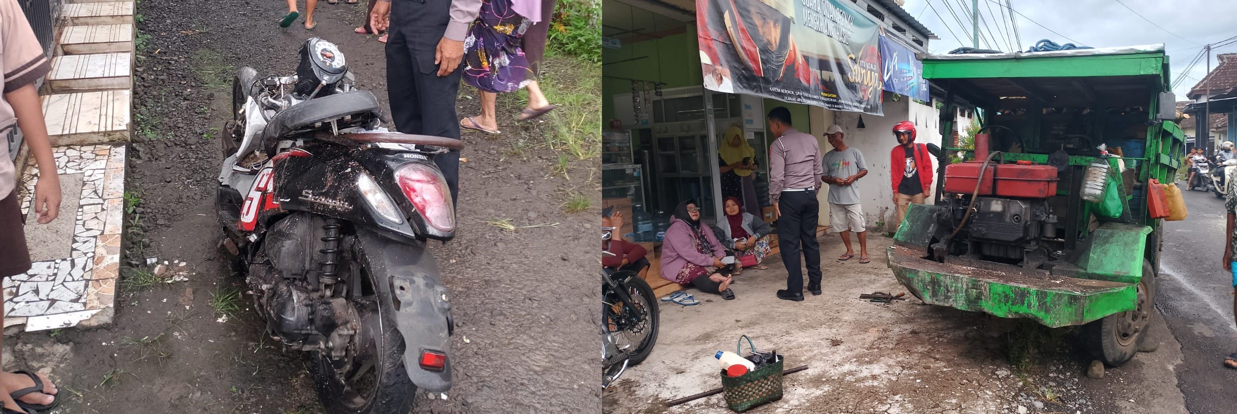 BANYUWANGIHITS.ID – Kecelakaan lalu lintas terjadi di Jalan Raya Cangaan, tepatnya di Dusun Cangaan, Desa Genteng Wetan, Kecamatan Genteng, Kabupaten Banyuwangi, pada Sabtu (11/4/2026) sekitar pukul 16.10 WIB. Insiden ini melibatkan kendaraan roda empat modifikasi jenis gerandong dengan sepeda motor Honda Scoopy.