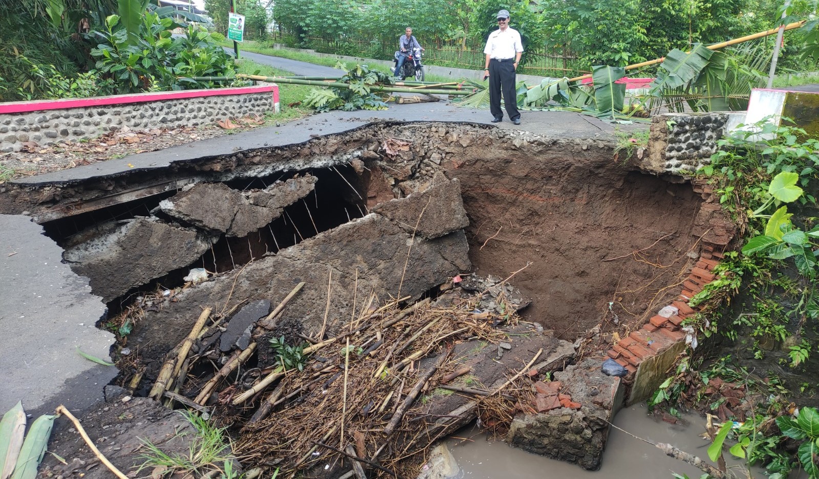 Kepala Desa Sraten, Arif Rahman Mulyadi, membenarkan bahwa kerusakan yang terjadi cukup parah akibat gerusan arus sungai.