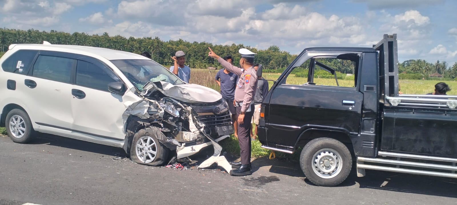 Peristiwa tersebut merupakan tabrakan depan antara mobil Daihatsu Xenia berwarna putih dengan nomor polisi P-1281-YN dan mobil pikap Mitsubishi berwarna hitam bernopol P-8252-VJ.