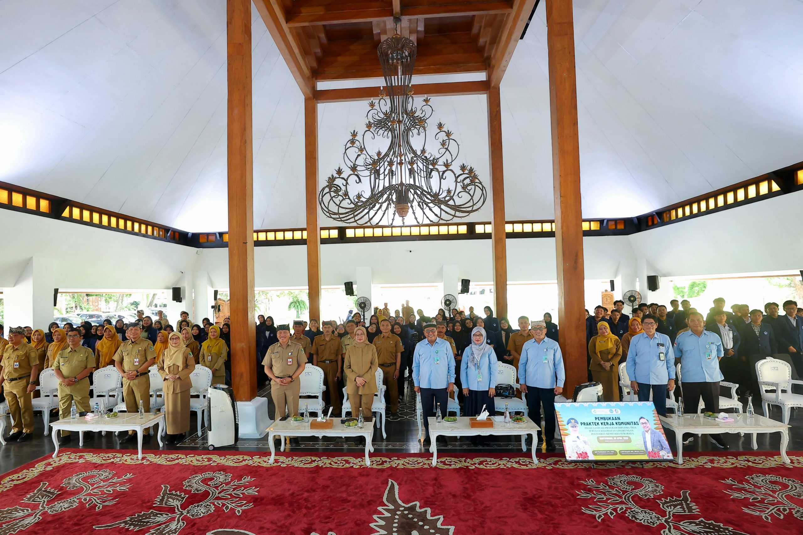 Mahasiswa semester enam dari Program Studi Sanitasi Diploma Tiga Jurusan Kesehatan Lingkungan tersebut diterima di Pendopo Sabha Swagata Blambangan, Senin (6/4/2026). Kegiatan serah terima turut dihadiri Direktur Poltekkes Kemenkes Surabaya, Luthfi Rusyadi, beserta jajaran.