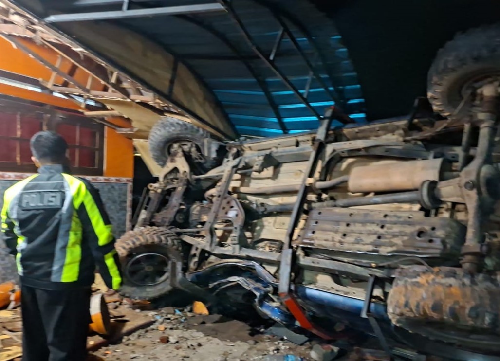 Mobil Pick Up Tabrak Rumah Warga di Kalibaru, Sopir Alami Luka Ringan