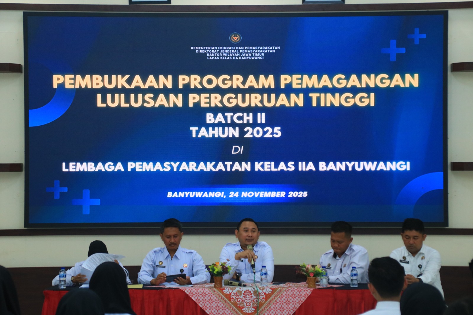 BANYUWANGIHITS.ID – Sebanyak 36 peserta yang lolos Program Pemagangan Nasional Batch 2 dari Kementerian Ketenagakerjaan (Kemnaker) hari ini memulai orientasi di Lembaga Pemasyarakatan (Lapas) Kelas IIA Banyuwangi. Acara orientasi digelar pada Senin (24/11/2025) sebagai bagian dari persiapan masa magang.