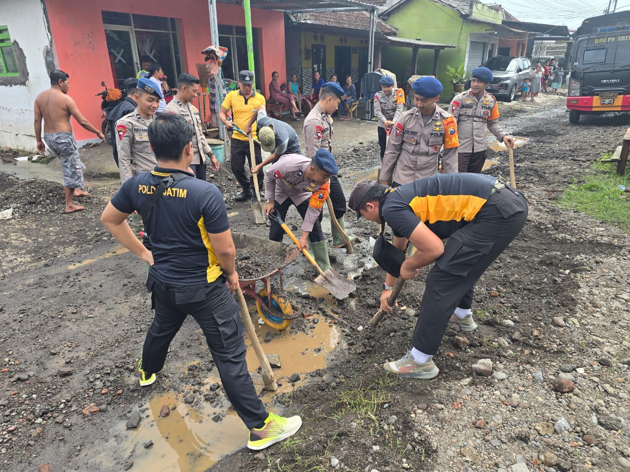Dalam kegiatan tersebut, para petugas juga melaksanakan kerja bakti, membantu membersihkan rumah-rumah serta akses jalan yang tertutup lumpur. Selain itu, mereka juga membagikan makanan kepada masyarakat yang membutuhkan.