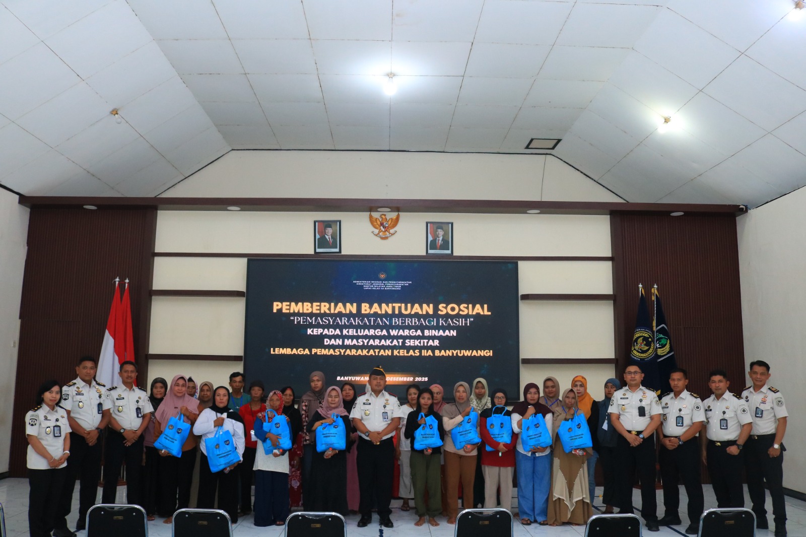 Bantuan sosial tersebut difokuskan kepada keluarga warga binaan yang dinilai membutuhkan uluran tangan. Penyaluran paket sembako dilaksanakan di Aula Sahardjo Lapas Banyuwangi dengan suasana tertib dan penuh kehangatan.