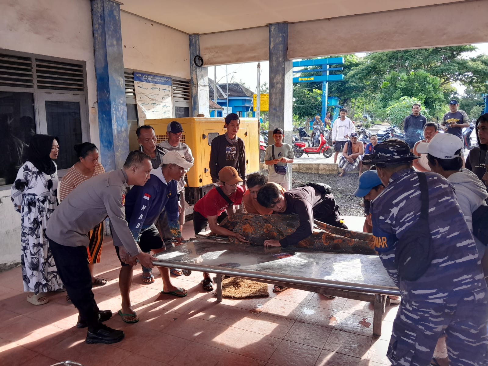 Setelah dievakuasi, jenazah dibawa ke darat dan dilakukan pemeriksaan medis oleh petugas dari PKM Grajagan, disaksikan pihak Polsek Purwoharjo, Pos AL Grajagan, serta keluarga korban.