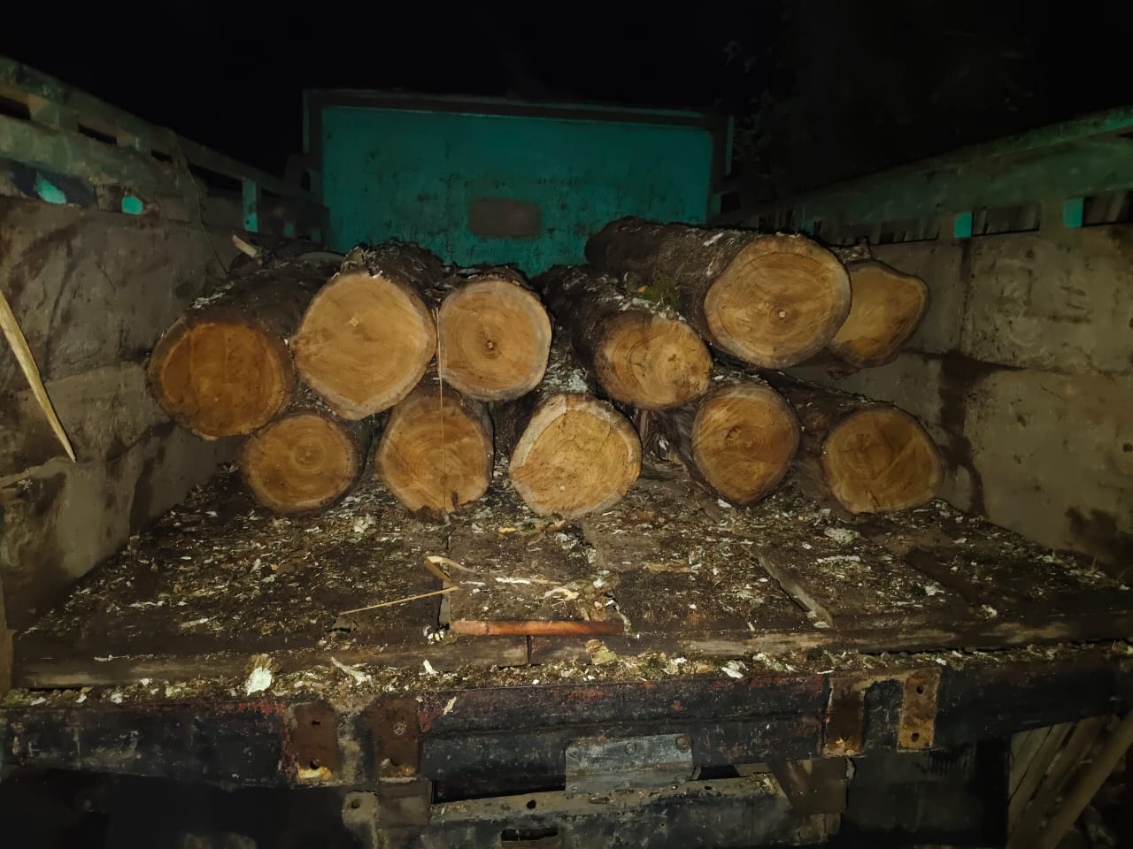 “Sekitar pukul 16.00 WIB kami mendapat informasi ada empat unit grandong yang keluar dari kawasan hutan membawa muatan kayu jati gelondong yang ditutup dengan ranting. Kami langsung menuju lokasi dan melakukan pembuntutan,” ungkap Giman dalam laporannya.