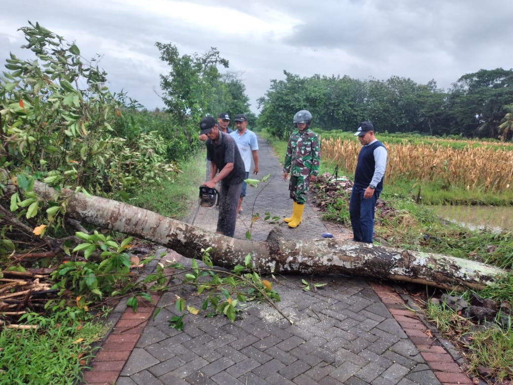 Kepala Desa Wringinagung Kondang Suryaningrat mengatakan, setelah ada hujan deras disertai angin kencang ada beberapa pohon trembesi tumbang.