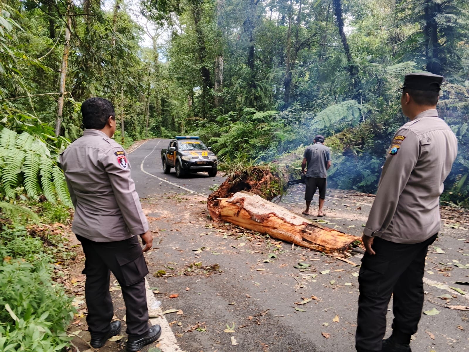 “Sudah dilakukan proses evakuasi. Pohon disingkirkan dari badan jalan,” katanya.