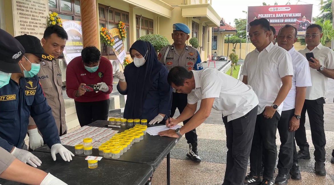 Polresta Banyuwangi Gelar Tes Urine Mendadak ke Personel Polri untuk Cegah Narkoba.