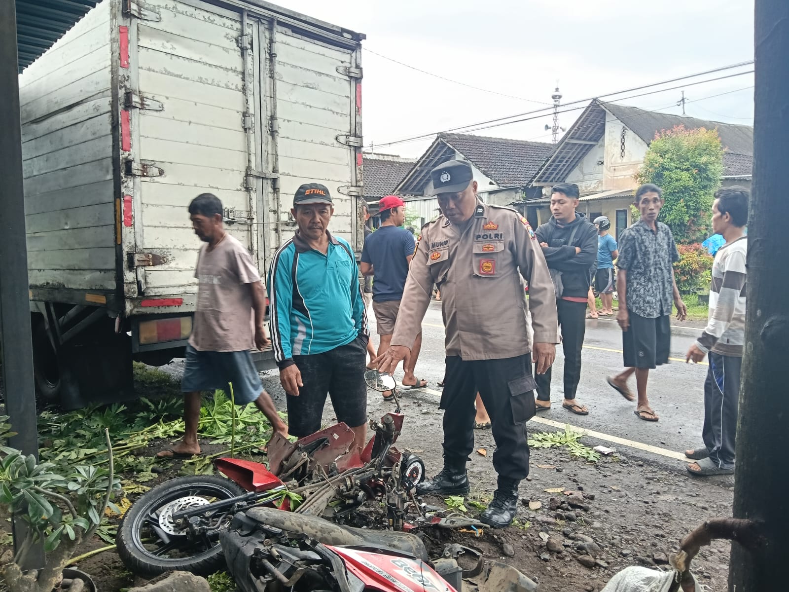 Tabrakan Truk Box dan Motor di Tikungan Gambiran Banyuwangi, Satu Korban Meninggal di Tempat.