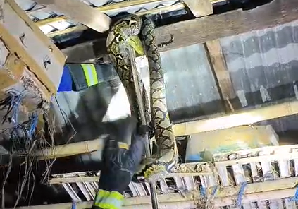 Teror Ular Piton 3,5 Meter di Atap Kandang, Damkarmat Banyuwangi Bergerak Cepat.